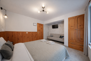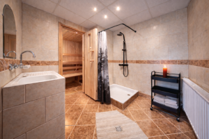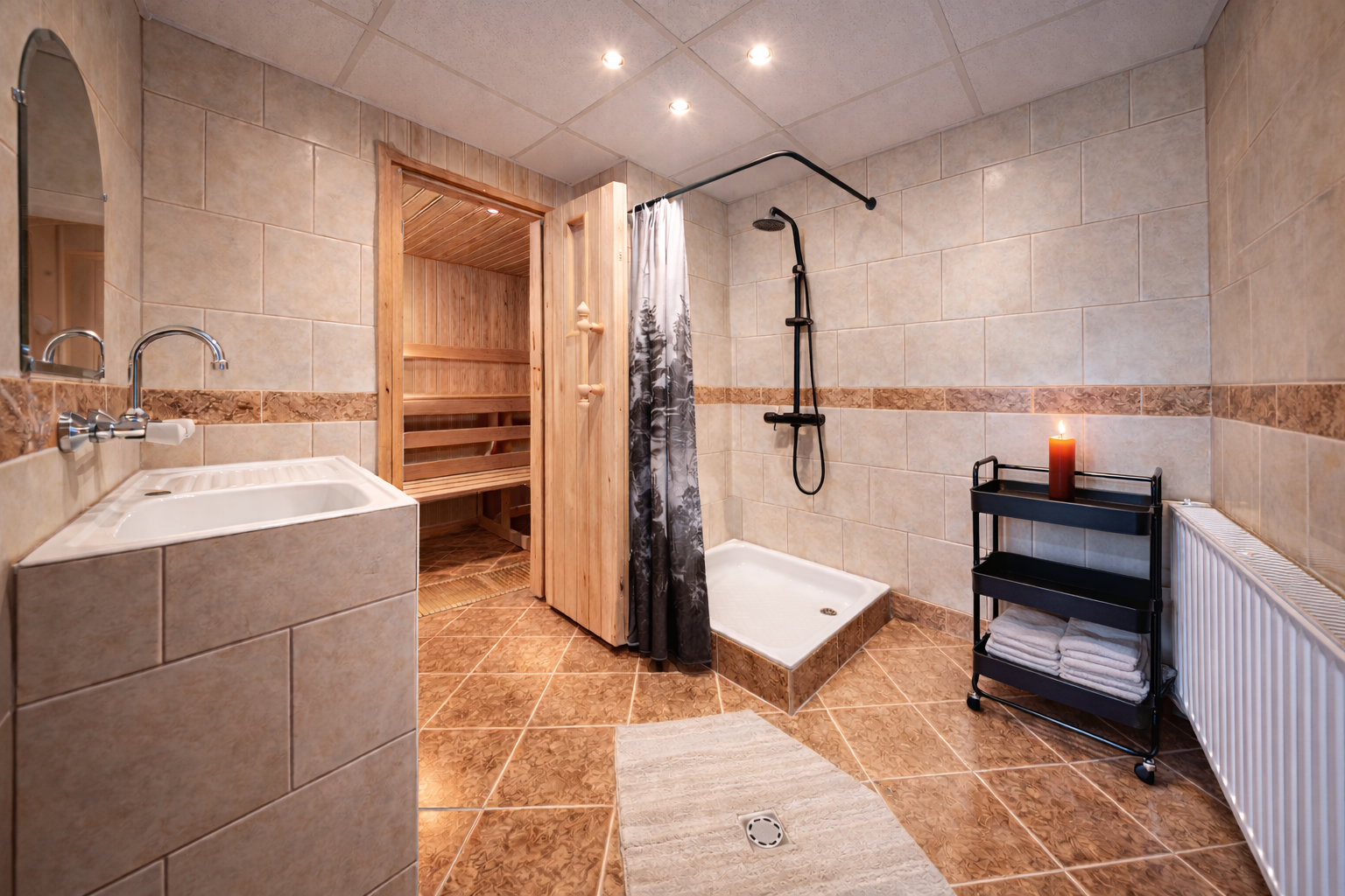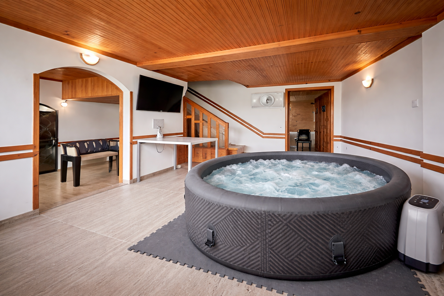 На етаж -1, може да намерите обособена СПА зона със сауна и джакузи. В помещението със сауната има душ и мивка.